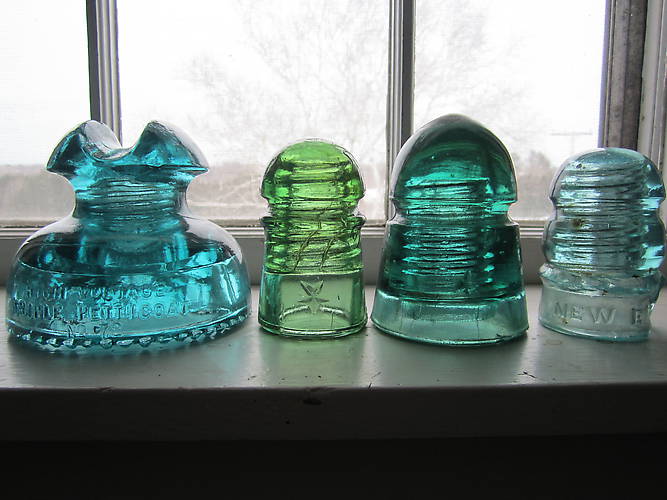 Here are some insulators I found all at the same place. A CD 295 Hemingray, A CD 102 star (One of my favorites!) Paid $2! a CD 145 Star, and a CD 112 New Eng. Tel &Tel. with a rather large piece of glass missing. Paid $1! I also purchased a CD 210 postal. |