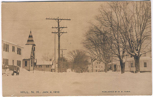 Hill, NH 1910, Snowy Village Center, Phone Openwire Lines