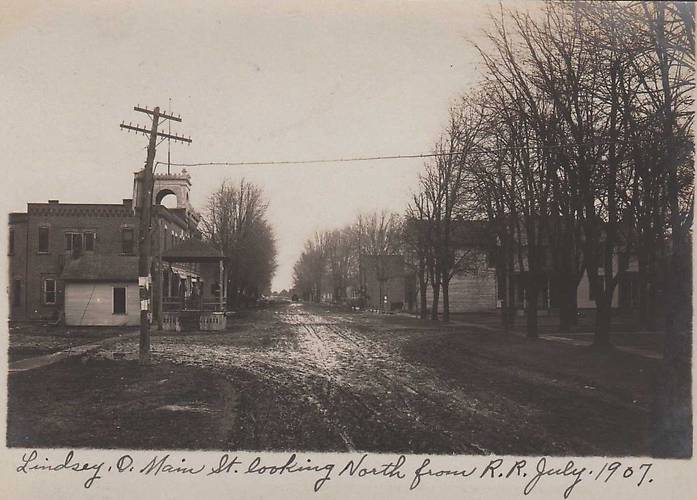 On the lower crossarm most likely were Brown's pony insulators providing room for additional openwire telephone circuits through this Ohio community.