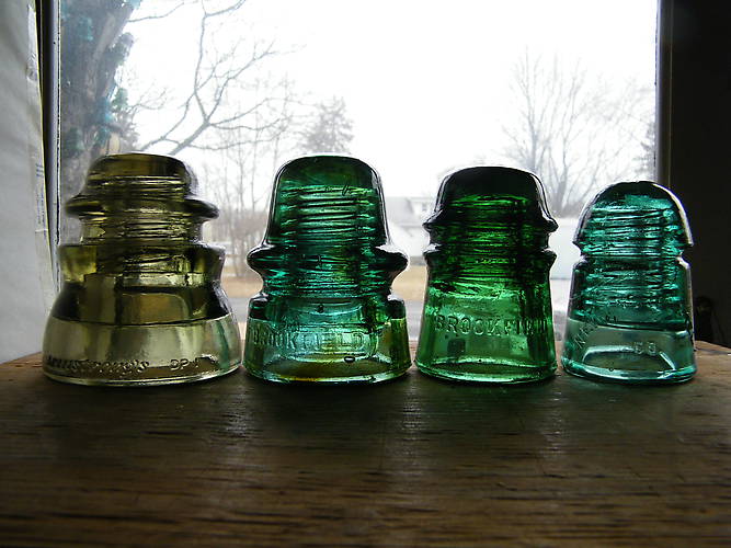 Finally went on another road trip yesterday. The show was labeled as an Antique show but was mostly bottle dealers. Zaphir Shamma was actually the only insulator dealer present and I picked up the Brookfield toll with blotouts and the New Eng Tel & Tel pony from him. The CD 162.1 Brookie to the left of the toll came from the seller to Zaph's right and my left being we were on opposite sides of his table. The show was over in Brewerton, NY which is 178 miles away according to my GPS. On the way back I stopped at an antique mall in Little Falls and picked the only other insulator of the day up. It a very dark smokey Armstrong's CD 155. I would have liked to have gone to Enfiled again but I had already made plans to meet Zaph in person for the first time. Also took advantage of visiting and spending some time with another insulator friend of mine in Onieda, N.Y.. So, all in all I had a great day even if I didn't find as many gems as I would have liked to have returned home with. The best thing about the toll from Zaph is that I have the exact same shade of emerald green but the shop number is different from the one I already had. Funny how my blotout collections manages to build itself without to much of my help except for my money. Isn't the first time one of these odd occurances happened. Guess that is why I buy them anyway!! |