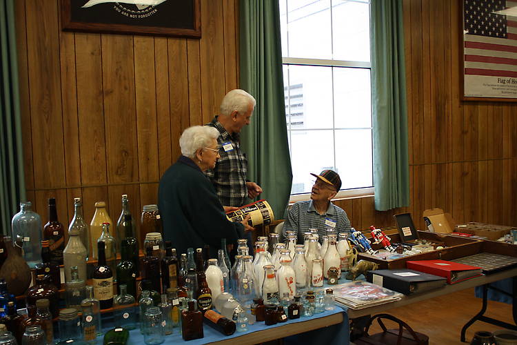 Rose, Dave, and Bob Sokol. Long-time non-insulator dealers who have supported the Pole Cat show for many, many years. Quite a selection of bottles as you can see. Coins and other smaller items in the cases on the right. They always say our show is a fantastic one. |