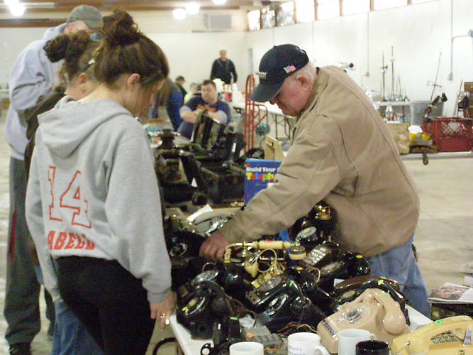 Here's a closer shot of Tom Nugent with his relatives. He's got a lot of phones at his tables. Bob Stahr is seated in the background, wishing the Bears had been in the super bowl.
