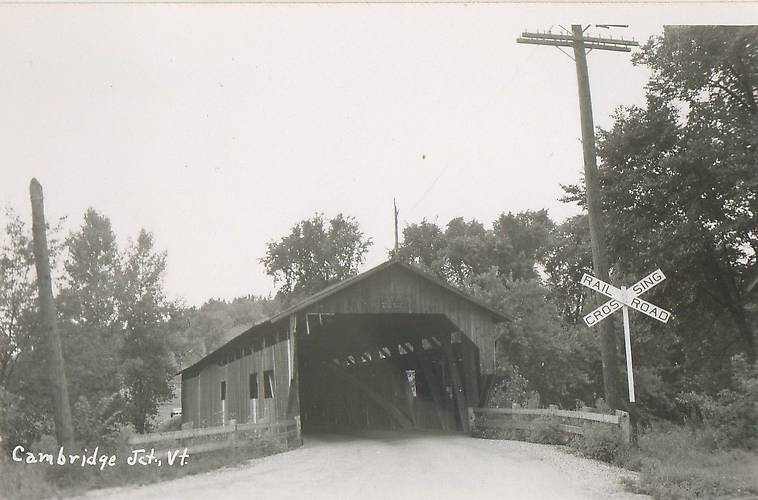Although railroad tracks (per the sign on the right) are not in view, they probably were where the photographer was standing or on the other side of the bridge.