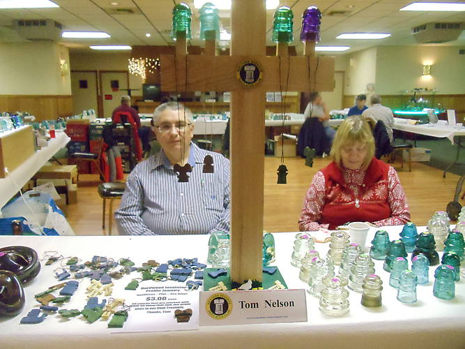 Tom & Sue Nelson at their table. Tom Nelson always amazes me on his research, first with Ohio Brass a while ago, then the Cadiz, Ohio Factory research a few years ago. Now he's into pony insulators, I can't wait to see what he'll come up with! The 14th Annual Allegheny Valley Insulator Show at the VFW Hall in Natrona Heights, PA on Saturday, April 5, 2014. |