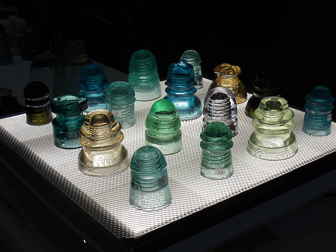 Some nice under-lit pieces again wreaking havoc with my camera's auto light adjust. Have to remember to shut that off, after I find the manual and try to navigate down though 3 layers of menus to find the setting! The 14th Annual Allegheny Valley Insulator Show at the VFW Hall in Natrona Heights, PA on Saturday, April 5, 2014. |