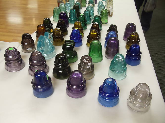 Here is some of the glass on one of Jim Frustieri's tables. Cobalt, Purple, Ambers… The 14th Annual Allegheny Valley Insulator Show at the VFW Hall in Natrona Heights, PA on Saturday, April 5, 2014.