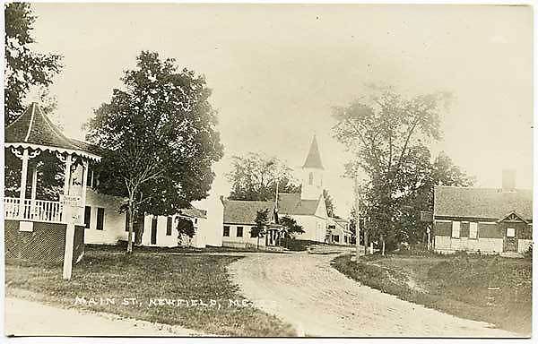 Newfield, ME c1910 Peaceful Village Centre, Gazebo, Church