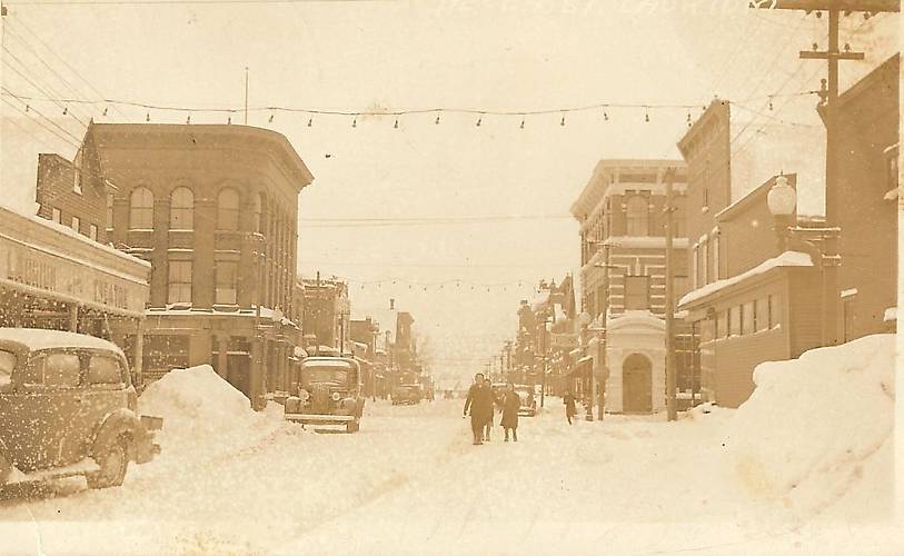 Laurium, MI 1930s Snowy Downtown, Utility Poles, Wires