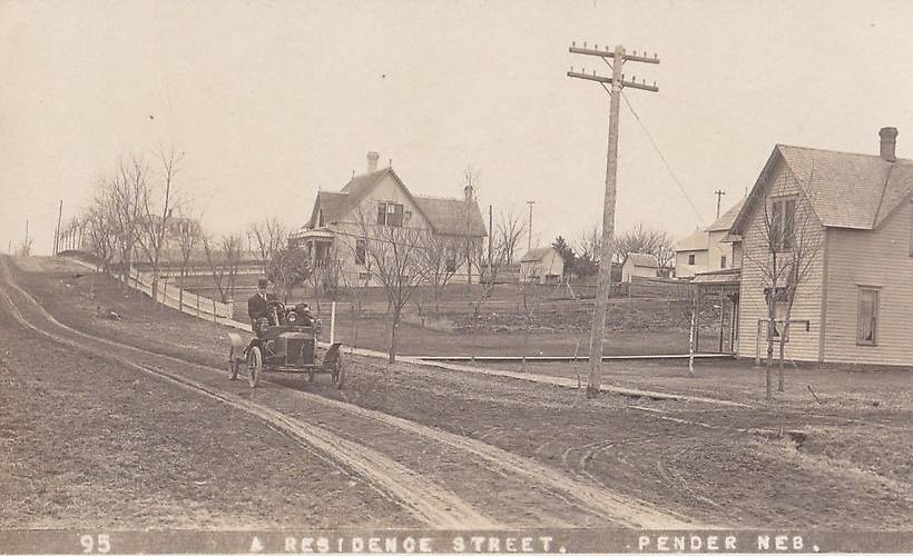 In addition are a couple nice old homes with an early automobile tooling down this rather muddy road...