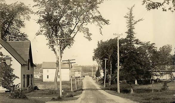 Along the left very likely are telephone open wire subscriber circuits with an electric service pole line on the right serving the residents of this rural Maine community.