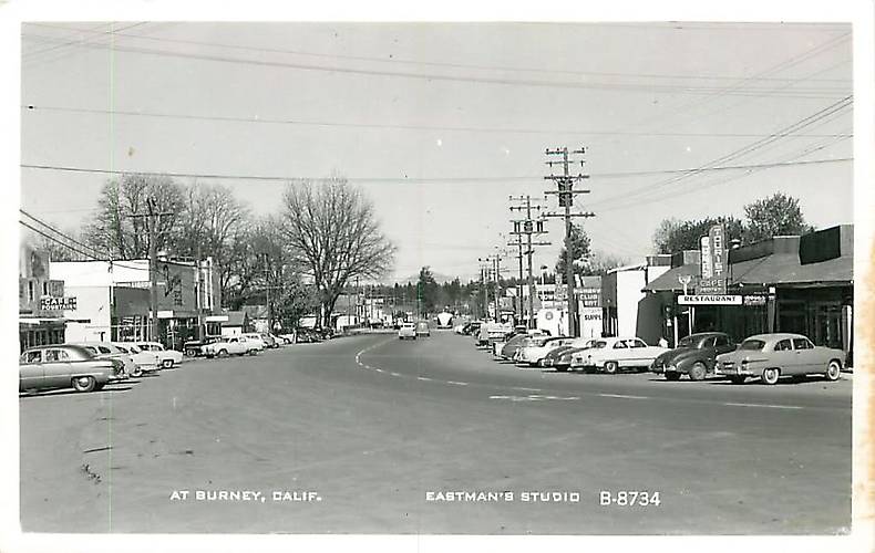 Burney, CA 1953, Downtown, Old Cars, Pole Lines, Americana