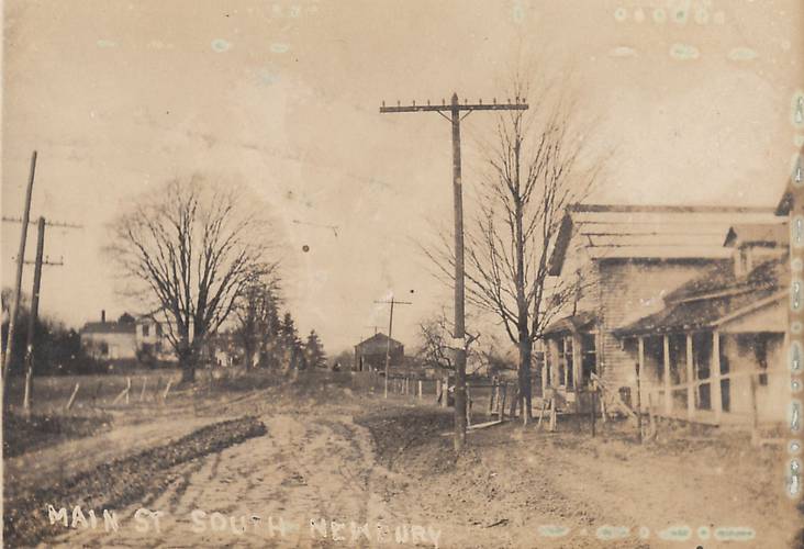 Newbury, OH c.1910, 10-Pin Openwire Lines, Muddy Road