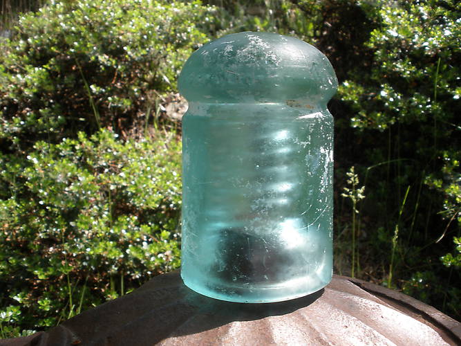 CD 127's are not commonly found in California, especially a straight-side such as this. Found in an antique store in the small beach town of Cambria on the Calif coast. It's nice to believe the haze is from being picked up someplace along the local sea shore, otherwise it may be the usual condition of glass found in the Nevada desert. |