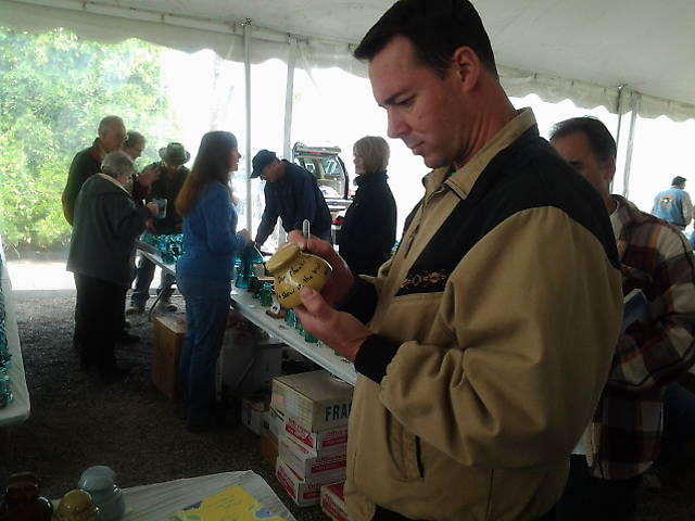 Nathan writing a note for Don and Camille on an insulator which I understand will be made into an insulator tree.