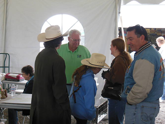 NIA President Lou Hall with wife Dee Dee in the background is helping coordinate the Farmington, NM National. Here he is talking to a family of unidentified collectors