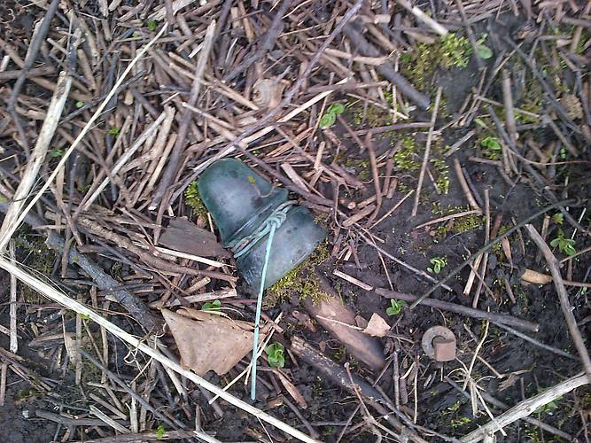 Went out looking for threadless in Bowmanville ON and instead found an old utility line running parallel. In the ground were this 162.4, a 164 and two frog eyes (clear) all in a row with the crossarm having rotted away leaving only the oak pins and the metal cross braces. Here are the 162.4 and 164 cleaned up [id=403819924]. That's the bolt that held the cross brace to the crossarm to the right of the pin. |