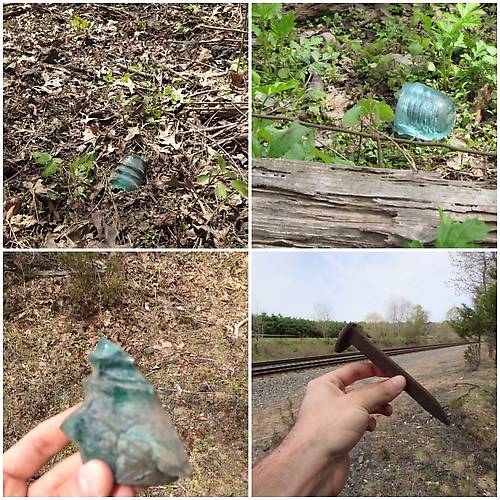 I was in the eastern PA area visiting my sister-in-law, husband and new baby and instead of going shopping with the ladies I decided to drive 2.5 hours to an undisclosed location to hunt for insulators. This location was given to me by the gentleman that I picked up that large grouping of colorful signals a little while back (ink, nn cobalt, honey ambers, orange ambers). He had snagged them nearly 30 years ago so I knew it was a long shot...still better than going to the mall haha Well I found only a few pieces of what looked to be a common beehive and a 152. Took some other neat pics of which I will also post. Enjoy! |