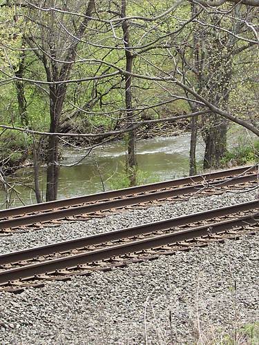 Awesome stream running alongside the tracks. A train was coming so in order to keep from being spotted I slid down the bank and hung onto a couple roots until the train passed. Little did I know that about two feet to the left was a slithering snake!! The adventures of the hunt! |