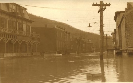 This flood associated with rain of Biblical proportions soaked the entire East Coast in March 1936, completely flooding a lot of downtowns and other areas within the storm's wrath. Snow melt and the lack of proper rain drainage added much woe and damage to communites like this one. |