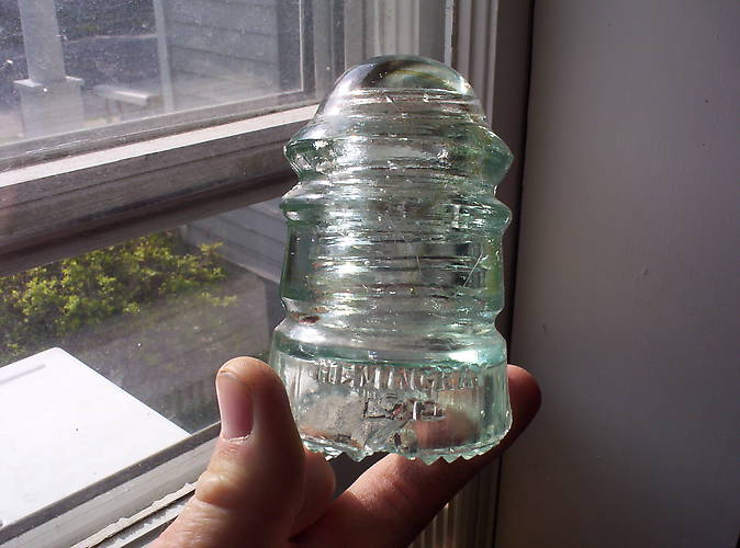 Good looking Ice green CD 113 dated 12.. You see the damage in the pic. Rest is clean. I have never seen this color 12 anywhere in all my years of collecting. How do you price it? Lets say $105 shipped. I don't think you will be sorry if you are a 12 collector. O.K. dropped to $75 shipped. |