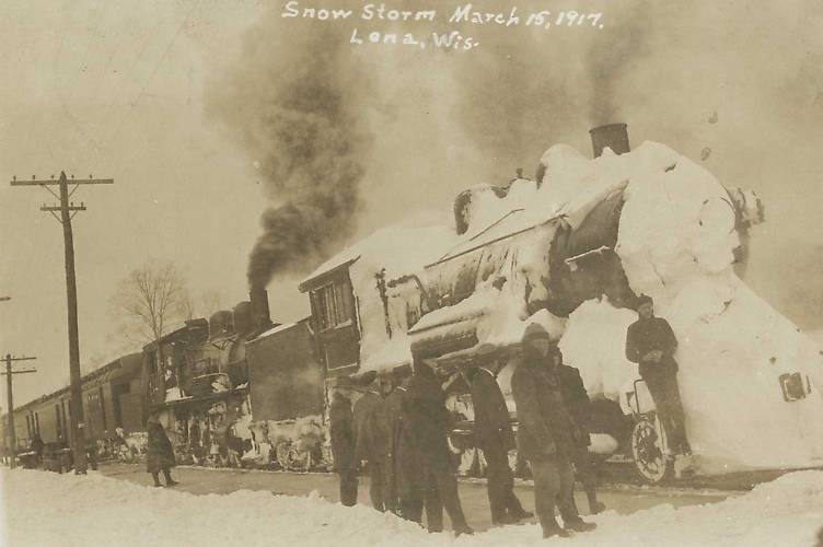 Lena, WI, March 1917, Lots of Snow, Train, Telegraph Lines