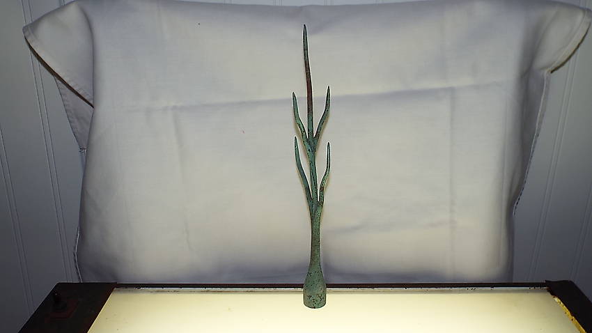 Measures about 10" tall... the base is threaded... Nice condition with beautiful patina...