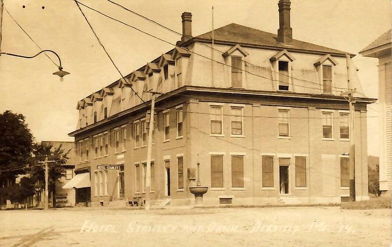 This design was introduced at some time in the 1890s and pretty much were the standard style for incandescent street lamps on utility poles across the US through the early teens. The "conical" 14-inch diameter metal reflectors upon these fixtures had white porcelain undersides. Typically a 3/4-inch section of pipe was used as a bracket. GE, Westinghouse, Pemco, Wheeler Reflector Co. and a number of other outdoor lighting manufacturers offered these luminaires. By the 1915 heavy-duty porcelain fixture heads were becoming standard for electric utility use and some of these were mounted on 1-1/4-inch pipe brackets with wrought iron ornate "scroll" undersupports. The latter had radial wave "ruffled-edge" reflectors that were quite commonplace for decades thereafter. |