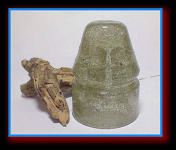 Here's a Square Pin Threadless Insulator Ginger Ale Color with bits of copper wire, and lots of bubbles. This one has number 40 embossed on the top and I very clear embossing on the base, which says "Designed by Bob Alexander SquarePin1870@Yahoo.com" This One Is a great state of Ginger ale with lots of tiny bubbles. All throughout the glass, and a few pieces of copper wire inside as well. Price? $50 postpaid anywhere in the US. PayPal is fine just use this email address |