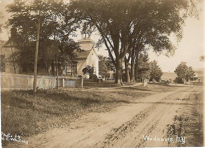 Wadhams, NY c.1915, Country Road, 2-Pin Pole Line, Church.