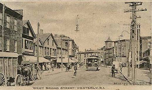 Westerly, RI c.1905 Downtown, Busy Utility Lines, Etc.