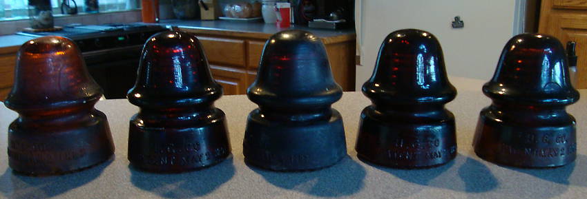 A local lineman's son had these pieces saved. He said his Dad looked for the "Red" ones. Three of the five are very red.