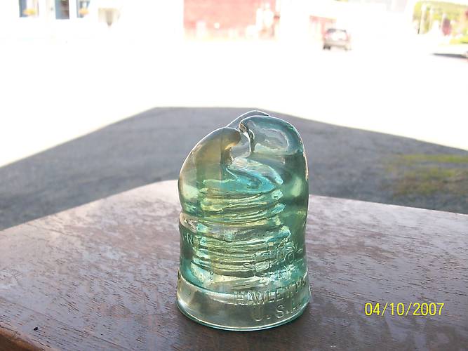 Here is the best insulator find a 14 year old boy can ask for. Yesterday, I was visiting an antique store owned by my parent's friends up near Greenville, Maine. she had bought it from her uncle. He drove from Maine to Arizona in the winter, and back in the spring, stopping at about every yard sale, flea market and antique store along the way. It's a rather small shop, yet the population of antiques is about 10-20 per square foot. If he sold something, he would go down cellar, or up stairs, and find something or a duplicate of the thing he just sold, and fill in the space. The place is FULL! Anyways, the insulator part of the story. In the back is all the insulators. (He also has some up stairs, and down...) I got a couple good ones. My first CD 160, a 201 Hemi, a CD 145 GNW, 153 Gayner with Sharp drips, and some other stuff. Then, my dad found the spot with the spare insulators. That's where I found all the stuff I just told you about. But then, I saw something in the back. "Oh, that must just be, such and such" I thought. I reached way back into the cupboard, and pulled it out... A CD 206.5 HARLOE CLAW! NO CLAWS MISSING, ONLY DAMAGE WAS A SMALL BASE CHIP! I just about died right there. I knew exactly what I had. Well, I thought it was the 109 version at first. I spent 10 minutes lying on the floor, shaking, (That's what I do every time I get a good insulator, but believe me, this is the first insulator I've found to this rarity.) trying to decide what I was going to do. I couldn't just walk out of the store paying 10 bucks for it; they were friends! I couldn't do that. I told them it was worth 2,000 dollars, (Remember, I thought it was a 109!) It seemed that they didn't believe me, but they knew I knew what I was talking about. I did tell them today that is was worth around 3,500-4,000 The sad part: I did not take that insulator home. I probably won't in quite a while. She is going to keep it, but It is withing reach. I get to see it when ever I want. It's in a safe place. I asked her if she wanted to put it on loan at my museum. Anyways, here's the picture of it. I took many pictures of it, but all but one turned out blurry. Don't pay any attention to the date on the photo. Believe it or not, that's the second Harloe to be found in the area. An engineer for the Canadian Pacific, residing in Greenville found one in the bottom of a box of bottles. Anyways, there's my story. |