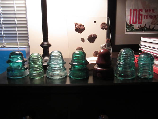 Found out in what I will just call semi-western PA this past weekend. 38-20 signal, light green W. Brookfield pony, light blue McLaughlin signal, green aqua + 2 rocks and some amber Brookfield signal, PRR U-169 unembossed, a tougher no embossing Hemingray product with only an H on the dome and a leaning fat pony. not shown are a green with amber CD 162.1 and a yellow green CD 162.1 Brookfield because they are in the bath. |