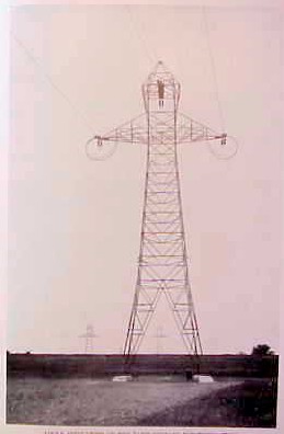 Unusual 3 Phase Lattice Design Transmission Tower, 1930