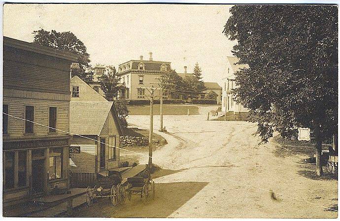 E. Machias, ME c.1910, Two Arm Phone Line Thru Town Centre