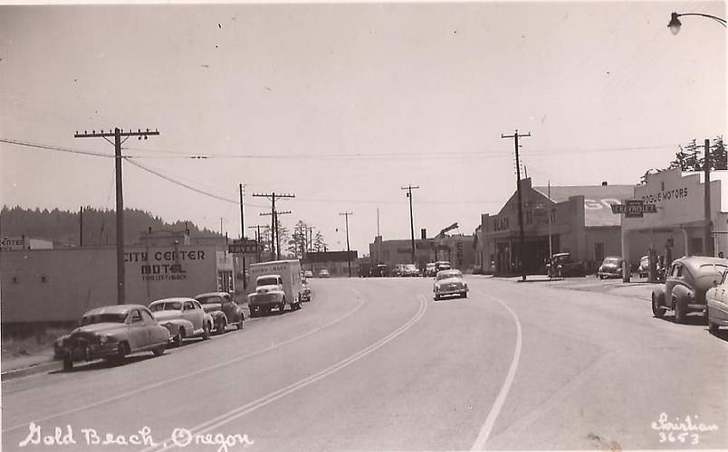 Gold Beach, OR c1950 Openwire, Old Cars, Signs, Americana