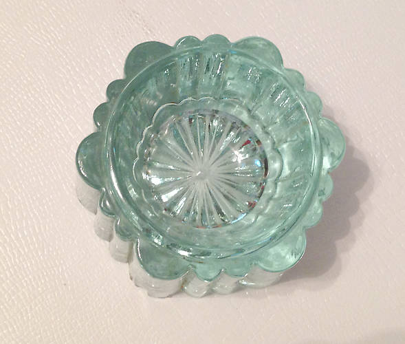 Modified Castle / rimmed -- pretty piece / nice condition - unusual style - ice green slight scuff marks on base - 1" flake on larger turret, at base- displays well! Price: $70.00 plus postage. Please contact me for additional photos!