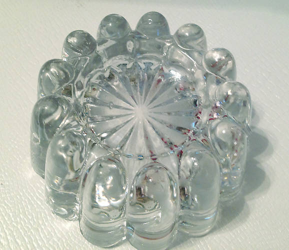Clear Unique Jelly style - 13 points - rare -- This piece has a couple flat base chips (one inch and 1.5 inch) . Rest of piece is in good shape and displays well. Price: $29.00 plus postage -- Please contact me for additional photos!