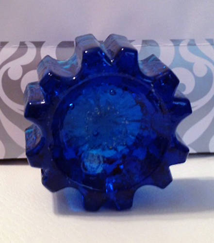 Small cog - bright cobalt blue - one base chip on one of the cogs (1/2") - small amount of wear(pitting) in well where leg sat - a couple little nibbles on top rim edge Price: $ 45.00 plus postage - Please contact me for additional photos!