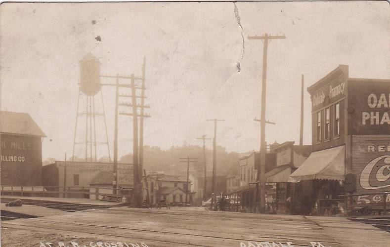 Unfortunately the painted Coca Cola advertisement on the building on the far right was not captured here. However everything else looks nostalgically magnificent within this Pennsylvania community's business centre peeking at this vantage point a century ago ;-) |