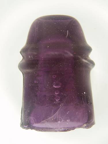 Page title got you to have a closer look? I'll let you know right away before you read any further I think my title is incorrect when it comes to the actual insulator being sold on this page. Although there is much milk in this CD 121 EIN 010 I think the one listed in price guide in the range of 1000-1250 is not Royal Purple like this piece is. Note when viewing my two pics I'll be uploading were taken while the insulator was submerged under water. You may not even know this insulator had milk when just sitting on a shelf. Using base lighing will pretty much bring out the milky swirls just as well or even better. Also note that what appears to be chain bubbles in my pic/pics are actually not. Had to double check myself before listing. What you see is air trapped in the threads. There are a few scattered bubble but those ain't them. Damage report : Above base this insulator is perfect. The base is about half flaked and half not..You will see some of that flaking when looking close at the right front side of insulator when displaying. I to wish those flakes were on the rear side of insulator. That way I could ask at least $750.00. Only kidding!! If you would like pics of the base before buying please don't hesitate to ask. First emailer saying I want will have this insulator on their doorstep in 2-3 business days once a payment of $80 is made. Add $10.00 USD's if you have a Canadian mailing address. I accept Pay Pal in non-fee mode, personal and money order checks as payment. Will combine shipping and give discount on every insulator purchased after the first. The more you buy the more you save!! |