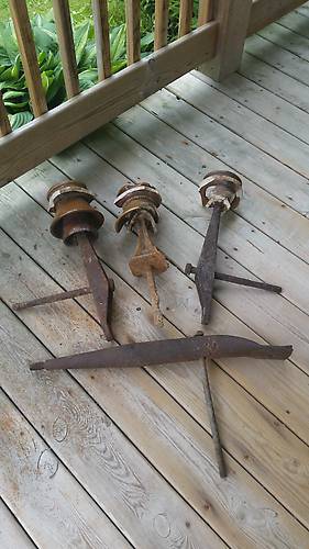 The wife and I journeyed way north in Canada to do some hunting on an old 1904-1905 hydro line that contained Fred Locke M-3060 insulators. We found a few relics . The two outer insulators have the Victor style top. The center one in the picture has a Fred top and it is on a different style pin stamped P&B out of Chicago IL. This line was cleaned up pretty good I would have to say back in 1996 by a local contractor I know. The swamps were hunted well which turned up many M-3060s that are in collectors hands today. |