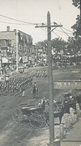 The crossarm upon this pole was held in place via two diagionally mounted lag screws, typical for electricity service and communications lines until around when this photo was taken. Through-bolts and crossarm braces were also used before then (back into the 1890s) depending upon the user. Location where this picture was taken is not known. |