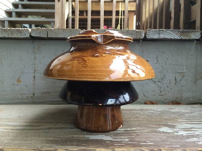 Here it is. Maybe a dirty blonde on top, sort of brown. Not a flake missing.