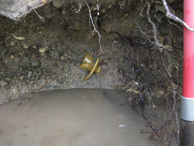 Since I couldn't make it to the National this year, I thought I'd spend a couple hours scrounging around at the Victor factory. Eventually spotted this weird appearing piece in the creek bank.