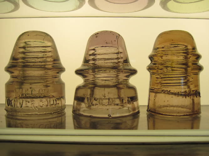 134 on left is a decent straw-sca two tone; VNM. While I have seen straw and two tone WFGs in this design I won't speak with any certainty here on it being authentic. It certainly may be legit but I can't vouch for that. Piece came from some insulator show back in the '90s. A good two tone and in excellent shape. $250. In middle is a nice 162 WGMCo in a light SCA top with a slightly silver base. The back half of the base does have some shallow flat chipping. Still nice and a very clean piece overall with no haze. $125. The one on the right is a 121 WGMCo in a peach straw color with SCA striations in the dome. Excellent shape but again here too I cannot say this is legitimate....it may be or it may be that it was cooked back in the 80's or later. I've seen the color in WGMCo bottles (they came in aqua, clear, amber, lt green, peach, straw as well as numerous SCA shades). The base is free of grill marks and it's not slumped. Wire groove has some marks on it from the tie wire. Judge for yourself. $250. US addresses only please and PP fine but gift option. Each piece $8 USPS shipping and if you want all 3 take them for $525 and $12 postage. Thanks ALSO--email mspoage@comcast.net as sometimes emails will not reach me here at work. |