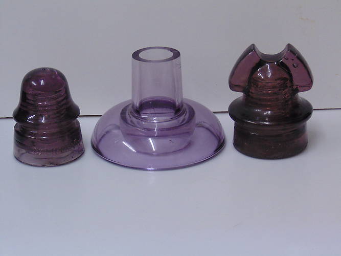 I went to a few garage sales Friday and as usual asked if they had any insulators. Most said "What are they?" and then "Nope". One guy said his son was selling a collection he had put together 10-12 years ago. He showed me 4 boxes of pretty common pieces but said his son had the better pieces stashed in the house and he would be home later that day. I left my number and got a call that night so went over to see the rest of the collection. Still a lot of commons with a few slightly better pieces and then these three. He didn't recall exactly where he picked these up or the story behind them but was pretty sure they came from the Missoula, MT area as he was only 11 years old at the time. We worked out a price for everything and I left amazed that I had run across a purple Cal helmet and a Cochrane bell in Missoula. Very Cool! |