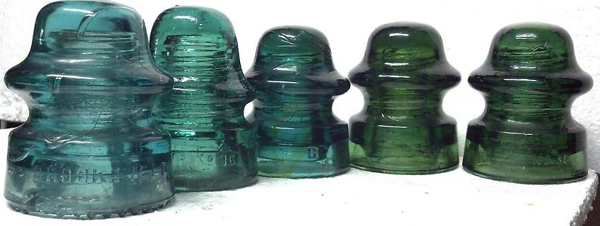 L-R 164 BROOKFIELD XO on dome with SDP, 162 BROOKFIELD No 36 with debris, 164 B with lots of streaks, 164 BROOKFIELD No 38 with debris, bubbles and light amber, 164 BROOKFIELD No 38 with tiny bubbles and amber .