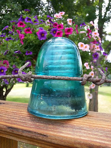 This is a beautiful deep blue colour with the original old cast iron tie wire still intact just as we found it. A real nice waterfall of milk cascades down from the dome for even a bit more character. The inner skirt is pretty well wasted but she displays wonderfully. [070] Thanks for looking! SALE SALE SALE- NOW $30.00 Plus Shipping |