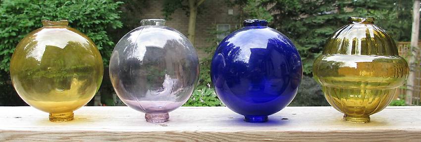 Here are a few different lightning rod balls for sale Plain Round - amber - one end has a minor flake out of it - price is $35.00 Plain Round - SCA Purple (darker than picture shows) - both ends are in great shape - price is $30.00 Plain Round - Cobalt blue - perfect shape - price is $60.00 W.C. Shinn - amber - one end has a 3/4" chip - price is $40.00 Additional pictures available upon request. Shipping will be calculated based on destination Thanks for looking |